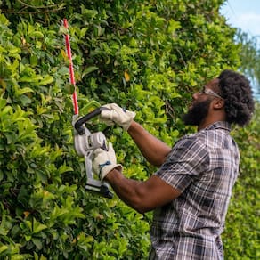 Com cortadores a fio, o AA500 inclui bateria e carregador, um ano de garantia, sem fio e 40min de autonomia, inclui capa de proteção, com lâmina de 50 cm e para recarregar demora apenas 70 minutos. Autonomia de 40min e bateria Íon Lítio. Indicado para acabamento de cercas vivas e arbustos, com seu corte contínuo e uniforme proporciona praticidade na hora de manusear o aparador. Empunhadora anatômica facilitando o uso. Características: Bateria Ion-lítio Samsung: 20V - 2.0AH Autonomia: 40min Recarga: 70min Comprimento da lâmina: 50cm Lâmina dupla em aço inox Sistema de segurança Stop+Alarme Capa de proteção Bateria e Carregador inclusos Aplicação: Uso residencial 1 ano de garantia Ean: 086156044204