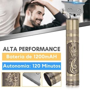 Conheça a máquina de corte detalhe barba dragão dourada o mais novo lançamento que está revolucionando a maneira que enxergamos corte de cabelo. É um incrível aparador de cabelo e barba, sem fio e recarregável, com uma bateria de que pode durar até 120 minutos de uso contínuo. Aparador externo profissional equipado com 3 pentes (1 mm, 2 mm, 3 mm) para cumprir exigências diferentes do comprimento. Você pode facilmente ajustar o pente para a altura certa e cortar o penteado que você deseja com extrema facilidade, pois é anatômica e antiaderente, garantindo total controle na hora do corte.
