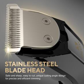 - Lâminas de aço inoxidável de alta qualidade: Este aparador de barba profissional está equipado com lâminas de aço inoxidável substituíveis que garantem uma experiência de corte suave sem puxar ou irritar, tornando-o adequado para todos os tipos de pele, incluindo peles sensíveis