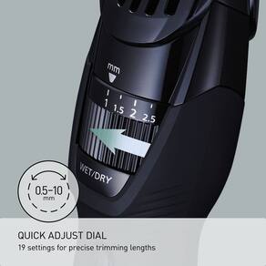 - Corte e escultura personalizados: um mostrador ajustável com 19 configurações para obter a aparência exata desejada; o acessório de pente incluído levanta os cabelos achatados para um corte limpo.