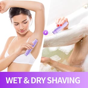 - ?Uso úmido e seco?Este barbeador elétrico para mulheres vem com design impermeável IPX7 para uso úmido e seco. Mais fácil de limpar, basta arrumar o cabelo residual no aparador com a escova incluída e depois limpar diretamente sob a água corrente.