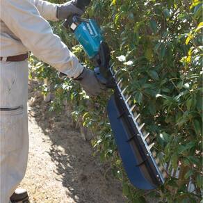 Lâmina de 750 mm fornece grande capacidade de corte O tempo de uso contínuo sem carga com uma bateria é superior ou igual a um tanque de gasolina cheio de um aparador de cerca viva a combustão A posição do punho frontal foi deslocada para a mesma linha do centro de gravidade deixando o punho traseiro com uma melhor manobrabilidade O motor BL que oferece 4 400 BPM para um corte mais rápido Controle de velocidade constante que mantém a rotação constante sob carga Sistema de rotação reversa libera a lâmina quando ela está presa por galhos grossos Proteção na ponta da lâmina contra desgaste desnecessário Baixa vibração zero emissões e manutenção reduzida