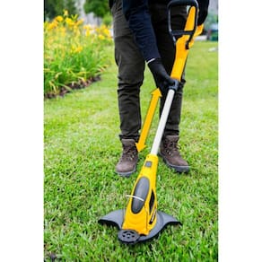 Leve, prático e funcional, possui punho auxiliar ajustável, corpo extensível, motor elétrico com dois rolamentos, trava que não deixa a extensão elétrica desconectar, carretel com saída dupla para o fio e sistema automático de avanço e corte do fio de nylon. Possui ainda, roda auxiliar de apoio para cortar as bordas da grama e cabeça com possibilidade de rotação, podendo ser posicionada na vertical ou horizontal, proporcionando maior facilidade nos acabamentos, além de limitador de distância que evita que o fio de nylon danifique o tronco ou o caule das plantas.