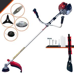 Com guidão ergonômico lateral, permite um alcance amplo e maior mobilidade, capaz de aumentar a produtividade diária. Possui motor 2 tempos á gasolina, de 43 Cilindradas; 1,7HP de potência que proporcionam maior performance e economia na operação. Seu conjunto de acessórios inclui kit de ferramentas, cinto de suporte almofadado, carretel de nylon e lâmina de corte 3 pontas.