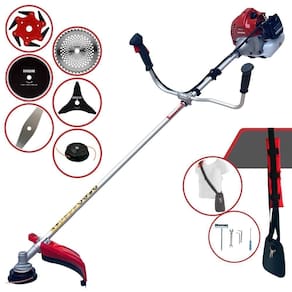 Com guidão ergonômico lateral, permite um alcance amplo e maior mobilidade, capaz de aumentar a produtividade diária. Possui motor 2 tempos á gasolina, de 43 Cilindradas; 1,7HP de potência que proporcionam maior performance e economia na operação. Seu conjunto de acessórios inclui kit de ferramentas, cinto de suporte almofadado, carretel de nylon e lâmina de corte 3 pontas.