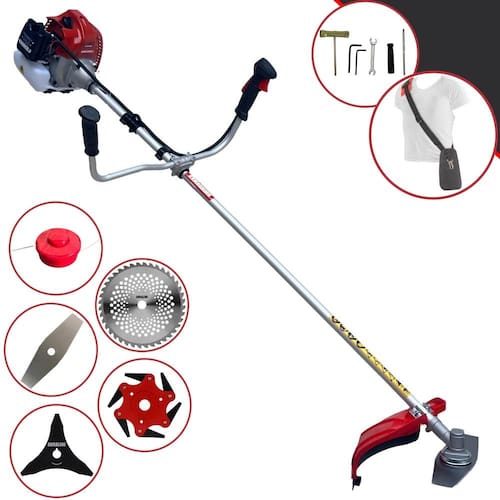Com guidão ergonômico lateral, permite um alcance amplo e maior mobilidade, capaz de aumentar a produtividade diária. Possui motor 2 tempos á gasolina, de 62 Cilindradas; 3HP de potência que proporcionam maior performance e economia na operação. Seu conjunto de acessórios inclui kit de ferramentas, cinto de suporte almofadado, carretel de nylon e lâmina de corte 3 pontas.
