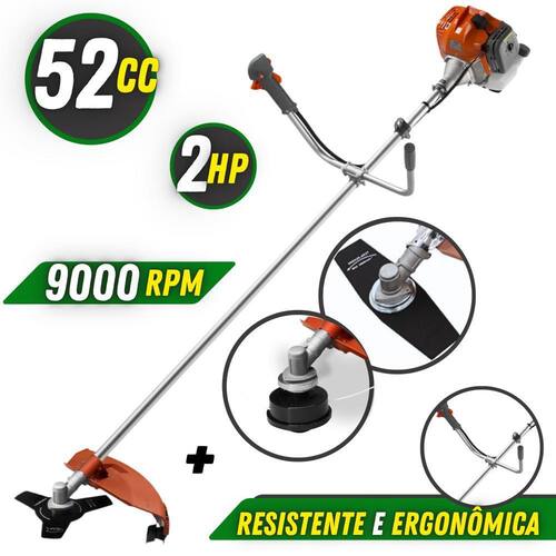 É uma roçadeira adaptável que pode se tornar multifuncional, podendo ser adaptado diversos modelos de acessórios, pois possui tubo de encaixe universal 28mm, e encaixe 25,4mm (1'') para Lâminas e Facas, ampliando ainda a sua diversidade de cortes. Realizando o trabalho de forma ágil e confortável, com cinto duplo almofadado que acompanha o equipamento, proporcionando maior conforto, ergonomia e segurança ao operador. Com guidão ergonômico lateral, permite um alcance amplo e maior mobilidade, capaz de aumentar a produtividade diária. Possui motor 2 tempos á gasolina, de 51,6 Cilindradas (52cc) 9.000 de rotação 2,0 HP de potência que proporcionam maior performance e economia na operação.