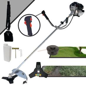 Com guidão ergonômico lateral, permite um alcance amplo e maior mobilidade, capaz de aumentar a produtividade diária. Possui motor 2 tempos á gasolina, de 42,7 Cilindradas, 12.000 de rotação 1,7HP de potência que proporcionam maior performance e economia na operação.Seu conjunto de acessórios inclui kit de ferramentas, cinto de suporte almofadado, carretel de nylon e lâmina de corte 3 pontas.