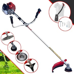 Com guidão ergonômico lateral, permite um alcance amplo e maior mobilidade, capaz de aumentar a produtividade diária. Possui motor 2 tempos á gasolina, de 43 Cilindradas; 1,7HP de potência que proporcionam maior performance e economia na operação. Seu conjunto de acessórios inclui kit de ferramentas, cinto de suporte almofadado, carretel de nylon e lâmina de corte 3 pontas.