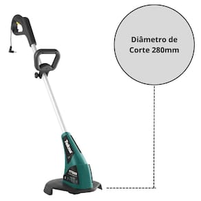 Seu cabeçote com sistema de fio duplo do tipo bate-libera proporciona agilidade na reposição do nylon, enquanto o diâmetro de corte de 28 cm cobre uma boa área com cada passada.
