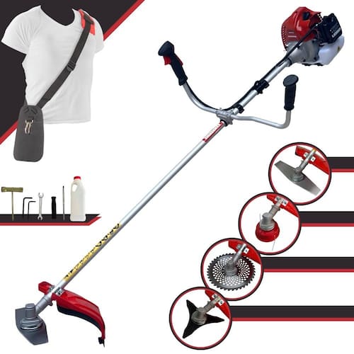 Com guidão ergonômico lateral, permite um alcance amplo e maior mobilidade, capaz de aumentar a produtividade diária. Possui motor 2 tempos á gasolina, de 62 Cilindradas; 3HP de potência que proporcionam maior performance e economia na operação. Seu conjunto de acessórios inclui kit de ferramentas, cinto de suporte almofadado, carretel de nylon e lâmina de corte 3 pontas.