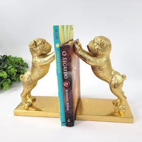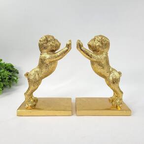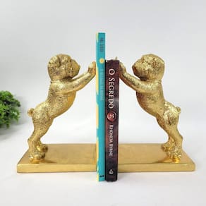 Design Elegante: Com um acabamento dourado deslumbrante, este aparador de livro apresenta um adorável cachorro, combinando charme e sofisticação em uma única peça. Materiais de Alta Qualidade: Feito com materiais duráveis, este aparador de livro garante longevidade e resistência, mantendo sua beleza intacta por muitos anos.