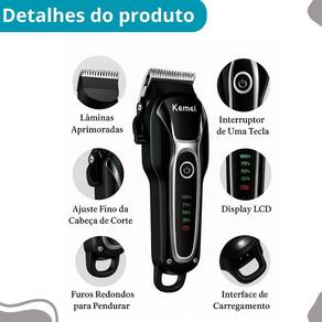 Aparador de pelo kemei km-1991 sem fio Descrição do anúncio: A máquina de tosa pet bivolt kemei km-1991 é ideal para tosar animais de pequeno e médio porte de forma eficaz e segura. Equipada com lâmina de aço inoxidável, possui tela lcd digital para monitorar a bateria e opera silenciosamente, garantindo conforto para o pet. Conteúdo da embalagem: Máquina km-1991 Fonte bivolt 4 pentes guia 3mm, 6mm, 10mm, 13mm Bisnaga com silicone Pente Cortador de unhas Lixa Manual do usuário Características: Sem fio Tensão bivolt Potência de 5w Lâminas de aço inoxidável ajustáveis 0,5 mm a 1,0 mm Motor de alta velocidade Carregamento rápido 3 horas Autonomia de até 120 minutos 4 pentes guia 3mm, 6mm, 10mm, 13mm Especificações: Material: abs de alta qualidade Tela lcd Sistema de corte r-shape Tempo de carregamento: 3 horas Tempo de uso: até 120 minutos Tensão de entrada: 5v Corrente: 1000ma Principais perguntas sobre o produto e respostas: 1 é indicada para pets de médio e grande porte Sim, eficaz para animais de qualquer tamanho. 2 o produto é resistente Sim, feito com materiais de alta qualidade e durabilidade. 3 tempo de carregamento da bateria Aproximadamente 3 horas. Marca: Não Informado Ean: 7905276308962