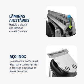 Lâminas em Aço Inox: Resistentes e autoafiáveis, são ideais para cortes rentes, precisos e suaves em todas as áreas do corpo. Além disso, conferem mais durabilidade ao produto.