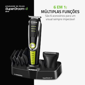 6 EM 1: O aparador de pelos da Mondial vem com 6 acessórios: são 2 tipos de aparadores de alto desempenho e 4 pentes de corte com diferentes opções de altura para aparar e remover os pelos do rosto e do corpo inteiro. Você pode ter uma aparência impecável sem sair de casa!