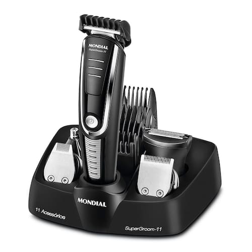 11 EM 1 - MÚLTIPLAS FUNÇÕES: O aparador de pelos da Mondial vem com 11 acessórios: são 5 tipos de aparadores e 6 pentes de corte com diferentes opções de altura para aparar e remover os pelos do rosto e do corpo inteiro. Você pode ter uma aparência impecável sem sair de casa!