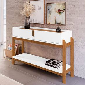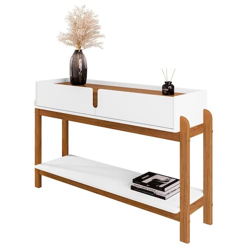O Aparador de Sala 2 Gavetas 130cm Nay C14 Branco/Cedro, da Mpozenato, se destaca pelo design sofisticado, sendo uma excelente escolha para trazer funcionalidade e estilo ao ambiente.