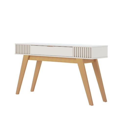 O Aparador Laisa combina charme retrô com um toque moderno, graças aos pés em madeira maciça e aos elegantes detalhes ripados nas laterais, que conferem um visual acolhedor e diferenciado. Conta com uma prática gaveta central com puxador dourado e um amplo espaço interno para organização, sendo produzido em MDP/MDF com pintura UV, o que garante maior durabilidade e qualidade. Esse item é perfeito para valorizar a decoração da sua sala, oferecendo funcionalidade, sofisticação e muito estilo!