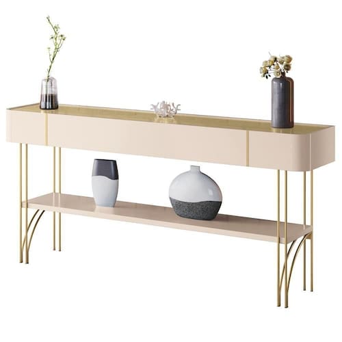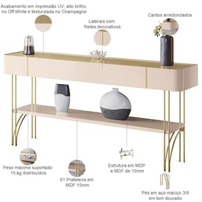 Com o Aparador Decorativo Industrial Sala de Estar Jantar La Vie B01 Off White Champagne, da Lyam Decor, o seu ambiente ganhará um toque de requinte e sofisticação expressos em um design contemporâneo e funcional.