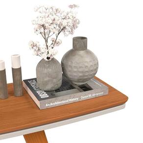 O aparador conta com tampo em MDF 18mm e pés em madeira maciça.