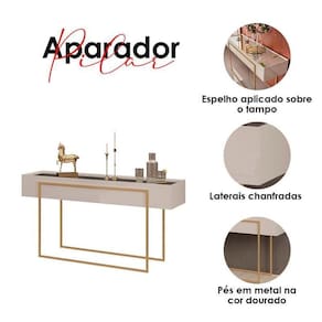 Começou a procurar móveis para sua sala? Então apresentamos para você este belo conjunto composto pelo aparador e a mesa de centro da linha Pilar. O aparador possui espelho aplicado sobre o tampo, laterais chanfradas e pés em metal na cor dourado. A mesa de centro em foi projetado para combinar com o aparador, com mesmas linhas modernas e sofisticadas. Tampo com espelho aplicado dando um toque refinado. As laterais chanfradas e os elegantes pés metálicos na cor dourado entregam requinte e praticidade. Fabricados pela DJ Móveis, são desenvolvidos em MDP/ MDF proveniente de madeira de reflorestamento, mostrando o compromisso com a sustentabilidade sem abrir mão da elegância. Sendo ideais para compor seu ambiente deixando mais sofisticado e acolhedor. Confira e aproveite!