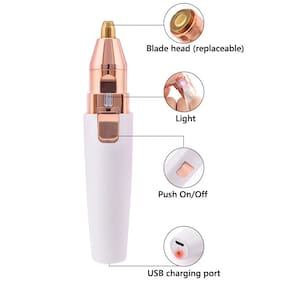 (Design fácil de usar) Design de luz LED para uso eficiente, operação com 1 botão e projetado em design em forma de caneta, este removedor de sobrancelhas apresenta ultraconveniência.