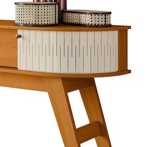 O Aparador Estoril traz elegância à decoração da sua sala de estar. Com duas portas curva em MDF, um detalhe exclusivo da Madetec, oferece autenticidade, praticidade e um acabamento sofisticado. Seu design apresenta detalhes curvos no tampo e na base, gaveta com corrediças telescópicas, pés "palito" e puxadores de poliestireno na cor bronze, que complementam perfeitamente o visual refinado. Composto por chapas de MDP de 15 e 25mm, o aparador possui 136cm de largura, otimizando o espaço da sua sala e adicionando um toque de modernidade.