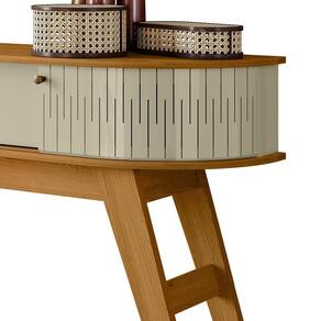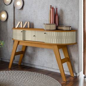 O Aparador Estoril traz elegância à decoração da sua sala de estar. Com duas portas curva em MDF, um detalhe exclusivo da Madetec, oferece autenticidade, praticidade e um acabamento sofisticado. Seu design apresenta detalhes curvos no tampo e na base, gaveta com corrediças telescópicas, pés "palito" e puxadores de poliestireno na cor bronze, que complementam perfeitamente o visual refinado. Composto por chapas de MDP de 15 e 25mm, o aparador possui 136cm de largura, otimizando o espaço da sua sala e adicionando um toque de modernidade.