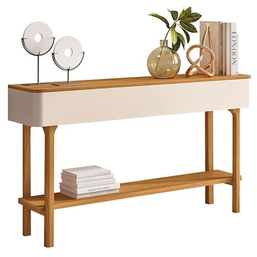 - Pés em madeira maciça, com design exclusivo e acabamento envernizado;