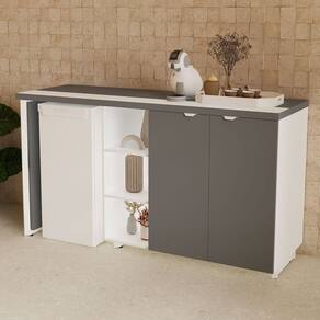 Aparador Frigobar Embutir Esquerdo Armário 2 Portas com Pés em Metal Corporate Cinza Sagrado / Branco