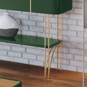 Requinte e sofisticacao traduzidos em pecas contemporaneas que enaltecem as formas organicas dos cantos arredondados, aparador com prateleira inferior de 25mm ideal para compor a decoracao ou ser utilizado como divisor de ambientes. Laterais com filetes decorativos, pes de aco macico 3/8 com acabamento em tom dourado, produzidos em MDP e MDF de 15mm.