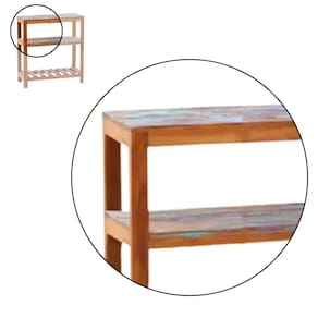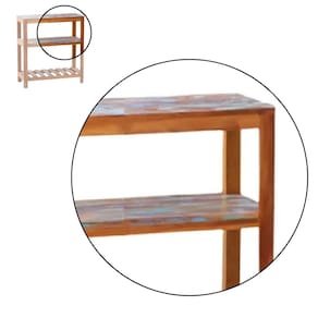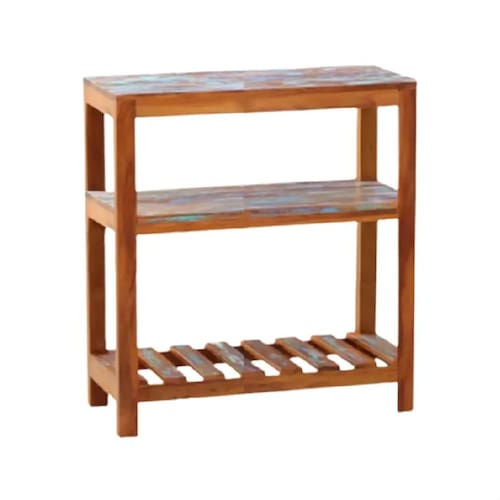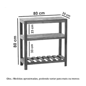 Aparador ilha bancada de 80cm em madeira maciça, acabamento pátina, ideal para decorar e organizar ambientes. Possui duas prateleiras para armazenagem, estrutura robusta e acabamento com verniz especial, garantindo durabilidade e requinte.