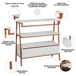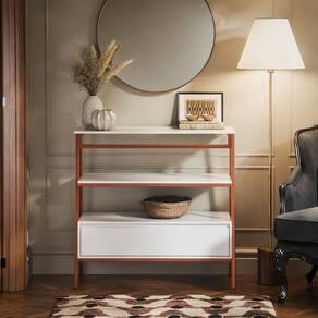 Aparador Industrial Hall de Entrada 1 Gaveta Thor Branco com Bronze - Rede Móveis