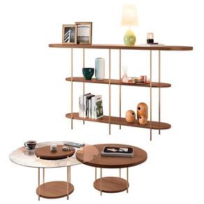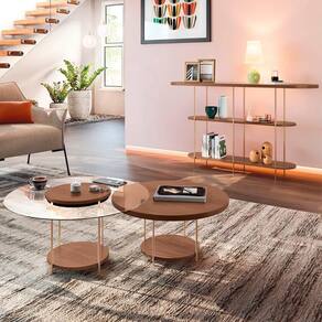 O tampo do Aparador Para Sala em 25mm possui um detalhe usinado com vidro embutido de 6mm, e as prateleiras oferecem amplo espaço para objetos decorativos e livros. As Mesas de Centro é uma perfeita combinação de design contemporâneo e materiais de qualidade. Com tampo em MDF de 25mm em uma das mesas e bordas de vidro 6mm na outra, elas se complementam harmoniosamente. Os pés em aço maciço 3/8 com acabamento dourado do conjunto adicionam um toque sofisticado, garantindo elegância e estabilidade. O aparador e as mesas de centro, com seu design sofisticado e materiais de alta qualidade, são a escolha ideal para transformar e valorizar qualquer espaço, proporcionando sofisticação e funcionalidade.