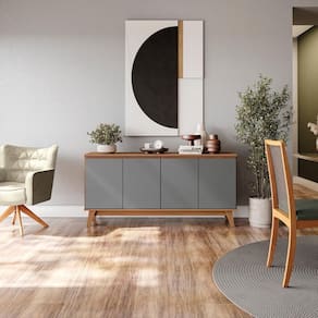 Transforme sua sala de estar com a beleza e a qualidade do Aparador 4 portas R262 da Kappesberg. Com um design clássico, ele se encaixa perfeitamente em todos os espaço. São 74cm de altura, 1,56m de largura e 54cm de profundidade, produzido com estrutura em MDP de 15mm e portas MDF de 18mm, o que garante mais robustez, firmeza e qualidade ao seu produto, além de um acabamento lindo. E com sete camadas de pintura, tanto na parte interna quanto na externa, a caixaria, em pintura touch na cor canela, conta com a textura dos veios da madeira, enquanto as portas, com acabamento fosco em BP, são na cor chumbo, uma combinação aconchegante e sóbria, ideal para espaços modernos e estilosos, fazendo a diferença no seu ambiente. Com quatro portas, e quatro prateleiras, você terá amplo espaço para guardar seus itens com praticidade, deixando sua sala de estar sempre organizada. A base e os pés completam o design e a qualidade do produto, garantindo seu acabamento clássico e rústico. Nas portas, o destaque fica para o sistema de amortecimento, garantindo um fechamento suave e sem ruídos, além de mais durabilidade, e o puxador cava embutido proporciona o toque de beleza que faltava, deixando sua sala de estar perfeita.