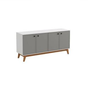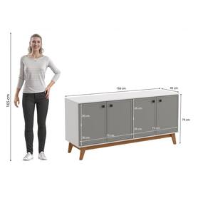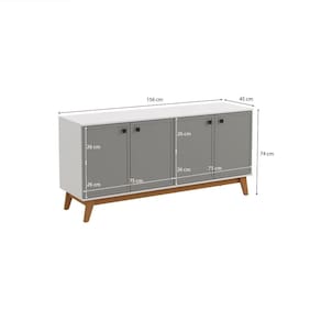 Robusta, sua estrutura é em MDP de 15mm, garantindo estabilidade e resistência para armazenar, e com medidas de 74cm de altura, 156cm de largura e 45cm de profundidade, combina com todos os espaços. O corpo na cor branca conta com acabamento brilho e superfície lisa, facilitando a limpeza.