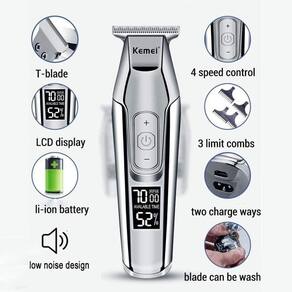 Aparador Kemei Km-5027 100v/240v Aparador De Cabelo Se você tiver alguma dúvida, pode nos consultar a qualquer momento, e responderemos assim que recebermos as novidades.Com este aparador de cabelo multifuncional Comey, você pode desfrutar de um produto de alta qualidade com ótimos resultados estéticos. Graças aos seus recursos, você poderá exibir seus looks favoritos.O que você precisa saber sobre este produtoCaracterísticas adicionais: Máquina de cortar cabelo.É sem fio e funciona com uma bateria recarregável.O tempo máximo que você pode usar é de 270 minutos.Carregue-o a 100% em cerca de 2 horas.Possui visor digital.Corta até 3 mm.Suas lâminas são feitas de aço carbono.Acompanha 3 pentes. Marca: Kemei 5027