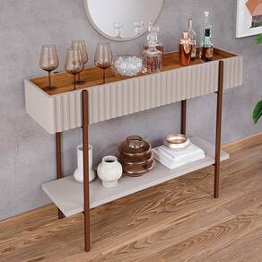 Aparador Lira Off White/nature - Cimol Móveis Off White/nature Aparador Lira - Cimol Móveis Sofisticação e modernidade para seu ambiente. O Aparador Lira é a peça perfeita para quem busca estilo e funcionalidade. Com estrutura em MDF e pintura UV, ele traz um design elegante com aplique 3D na frente, agregando charme e exclusividade. Conta com prateleira superior ampla e prateleira inferior de 25mm, ideais para organizar e expor objetos decorativos. Seus pés em metalon 20x20 na cor cobre fosco dão o toque final de requinte. Transforme seu espaço com esse móvel sofisticado. ESPECIFICAÇÕES: - Estrutura em MDF - Pintura UV - Frente com aplique 3D em MDF revestidos - Prateleira superior ampla - Prateleira inferior de 25mm - Pés em metalon 20x20 na cor cobre fosco