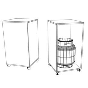 Uma face é aberta para ventilação facilitando a troca do botijão.