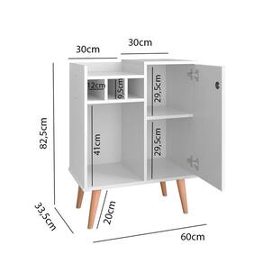 O móvel é composto por 3 adegas, prateleira interna e externa, 1 porta que dá acesso a um espaçamento interno e pés resistente a água, o que facilita na hora da limpeza.