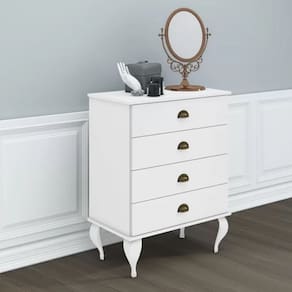 A Cômoda clássica 4 gavetas, CL 4009, Possui sua estrutura em MDP 15mm, 3 mm costas, pé madeira, puxador zamack, traz o charme e elegância da linha clássica para sua casa. Se adapta a qualquer ambiente.