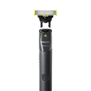 OneBlade QP1424/10 apara, modela e barbeia pelos de qualquer comprimento. Com o seu sistema de proteção dupla feito para cortar o pelo e não a pele, um revestimento para deslizar combinado com pontas arredondadas, torna o barbear mais simples e confortável. Possui 2 pentes para aparar e é completamente a prova d'água.