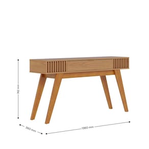 CARACTERÍSTICAS TÉCNICAS: - Produzido em MDP de 15mm, MDF de 15mm e HDF de 3mm - Acabamento Fosco/Brilho com Pintura UV - Gaveta com Corrediça Telescópicas - Puxador Metálico na cor Dourado Fosco - Pés em Madeira Maciça com 58cm de Altura - Detalhe Ripado Artesanal - Peso suportado no tampo de 10kg - Peso suportado na gaveta de 2kg - Possui 1 Gaveta