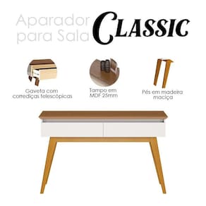 Apresentamos para você este belo aparador da linha Classic, uma peça elegante e funcional que combina sofisticação e praticidade. Com duas gavetas espaçosas, são perfeitas para guardar seus acessórios mantendo tudo organizado. As corrediças telescópicas garantem um deslizamento suave e silencioso. Seus pés em madeira maciça oferece mais estabilidade e dá um toque de elegância. Fabricado pela Imcal, é produzido em MDP/ MDF com materiais de alta qualidade garantindo mais durabilidade por muitos anos. O design clássico e acabamento impecável será uma experiência perfeita entre praticidade e qualidade. Confira e garanta o seu!