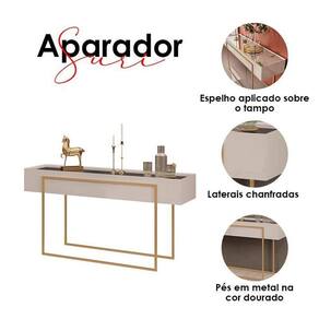 Está escolhendo os móveis para sua sala? Apresentamos para você este belo aparador da linha Suri. Seu tampo com espelho aplicado entrega elegância e requinte, enquanto as laterais chanfradas acrescenta modernidade. Os pés em metal na cor dourado garante mais estabilidade e um toque de charme. Fabricado pela DJ Móveis, é desenvolvido em MDP/ MDF de alta qualidade com madeira reconstituída proveniente de reflorestamento. Uma peça que é perfeita para sala de estar, jantar ou hall de entrada, aliando funcionalidade, resistência e estilo para como seu ambiente com bom gosto. Confira e aproveite!