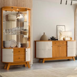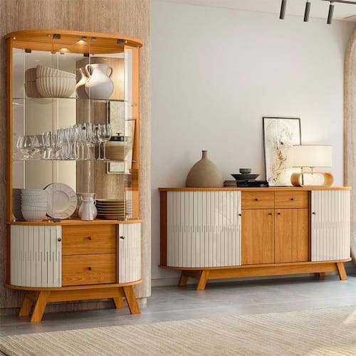 Aparador para Sala Buffet Ambiente Mônaco e Cristaleira Moss Cinamomo Off White – Madetec