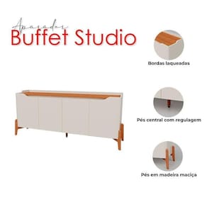 Está montando sua sala? Apresentamos para você este belo Buffet da linha Studio. Seu design moderno conta com quatro portas com as bordas laqueadas, trazendo um acabamento refinado e elegante. Possui pé central com sapata regulável, garantindo mais estabilidade mesmo em pisos irregulares. Os pés em madeira maciça adicionam um toque de robustez e estilo, reforçando sua estrutura. Fabricado pela Imcal, é desenvolvido em MDP/ MDF de alta qualidade, sendo ideal para quem deseja praticidade e sofisticação para compor sua sala. Aproveite e garanta já o seu!