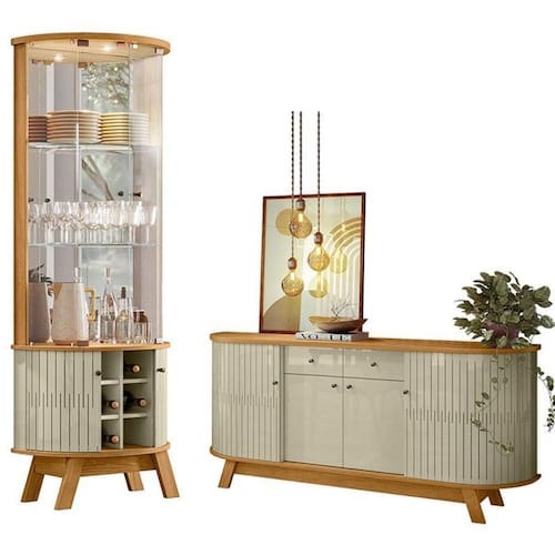 Aparador para Sala Buffet Mônaco e Cristaleira Marina Cumaru Opala Madetec