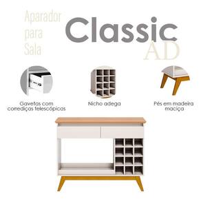 O aparador da linha Classic AD combina funcionalidade e elegância para complementar seu ambiente. Suas duas gavetas são equipadas com corrediças telescópicas, possuindo uma abertura suave e sem esforço. As gavetas oferecem um ótimo espaço interno para organizar diversos itens, mantendo seu espaço sempre organizado e arrumado. Além disso, apresenta nicho adega para até doze garrafas, permitindo que você exiba sua coleção de forma elegante e acessível. Os pés em madeira maciça garante estabilidade dando um charme rústico. Fabricado pela Imcal, foi desenvolvido em MDP/ MDF com materiais de alta qualidade garantindo mais durabilidade e prolongando a vida útil. Com acabamento impecável será a peça que combina beleza e praticidade para sua sala de estar. Confira e garanta o seu!