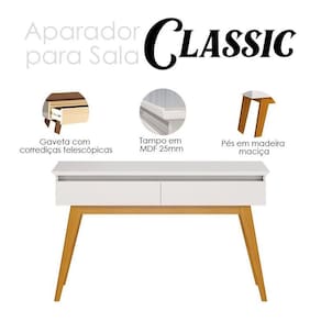 Apresentamos para você este belo aparador da linha Classic, uma peça elegante e funcional que combina sofisticação e praticidade. Com duas gavetas espaçosas, são perfeitas para guardar seus acessórios mantendo tudo organizado. As corrediças telescópicas garantem um deslizamento suave e silencioso. Seus pés em madeira maciça oferece mais estabilidade e dá um toque de elegância. Fabricado pela Imcal, é produzido em MDP/ MDF com materiais de alta qualidade garantindo mais durabilidade por muitos anos. O design clássico e acabamento impecável será uma experiência perfeita entre praticidade e qualidade. Confira e garanta o seu!